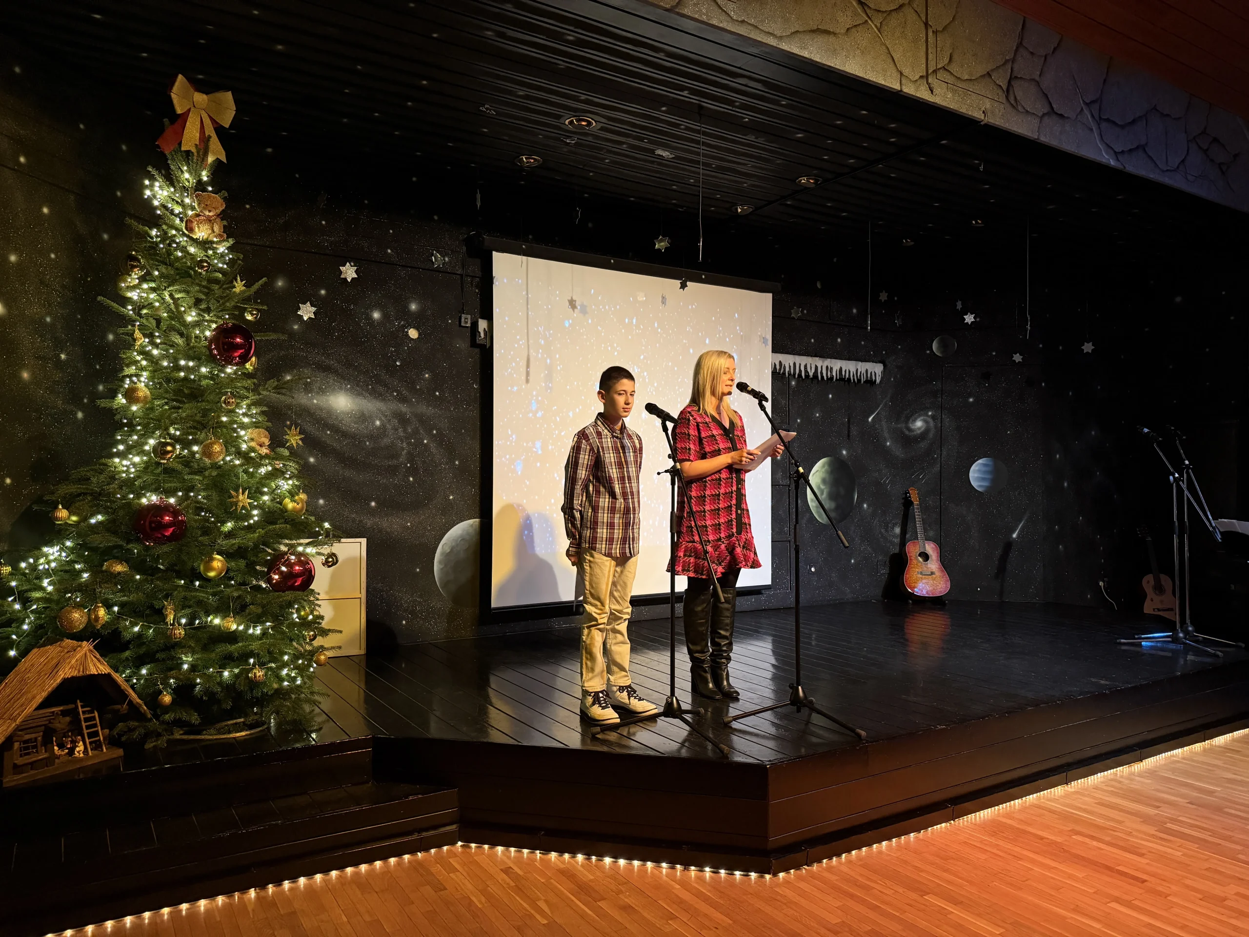 Nakon njih, uslijedile su glazbene i dramske izvedbe koje su raspjevale sve prisutne. Pjesmom O Tannenbaum, predstavila nam se naša Mala škola violine pod vodstvom Hrvoja Budaka, a naša dramska skupina Čarobna scena, na čelu sa voditeljicom Marijom Matković, izvela je predstavu Božićna potraga za dobrotom koja nas je podsjetila na ono najvažnije – ljubav, obitelj i vrijeme koje provodimo zajedno. Božićna priredba okuplja nas u trenutku radosti i zajedništva, daleko od svakodnevne žurbe. Glazbeni sastav Glazbeni sanjari i zbor kolegica SOS Dječjeg sela Lekenik, SOS voice, raspjevao nas je božićnim i popularnim hrvatskim pjesmama. Nastup iznenađenja bio je ženski vokalni sastav Lađarice, koje su naš program obogatile izvedbom tradicionalnih božićnih pjesama. Izvedbom pjesme U to vrijeme godišta, imali smo priliku čuti i našu školu gitare, pod vodstvom Siniše Canka. A kao i uvijek, rasplesala nas je plesna skupina Lekeničke zvjezdice, pod vodstvom Dine Koren i Lucije Lamešić Kurdija.